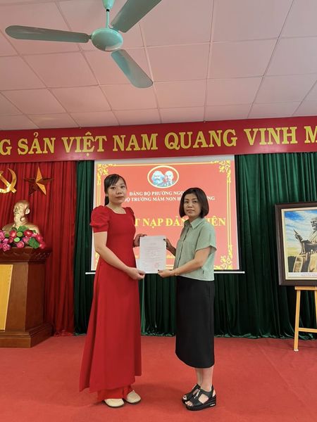 Thực hiện Kế hoạch phát triển Đảng viên, chiều ngày 12/06, Chi bộ trường mầm non Hướng Dương tổ chức kết nạp Đảng cho đồng chí Vũ Thị Thu Vĩ và đ/c Đoàn Bích Ngọc.