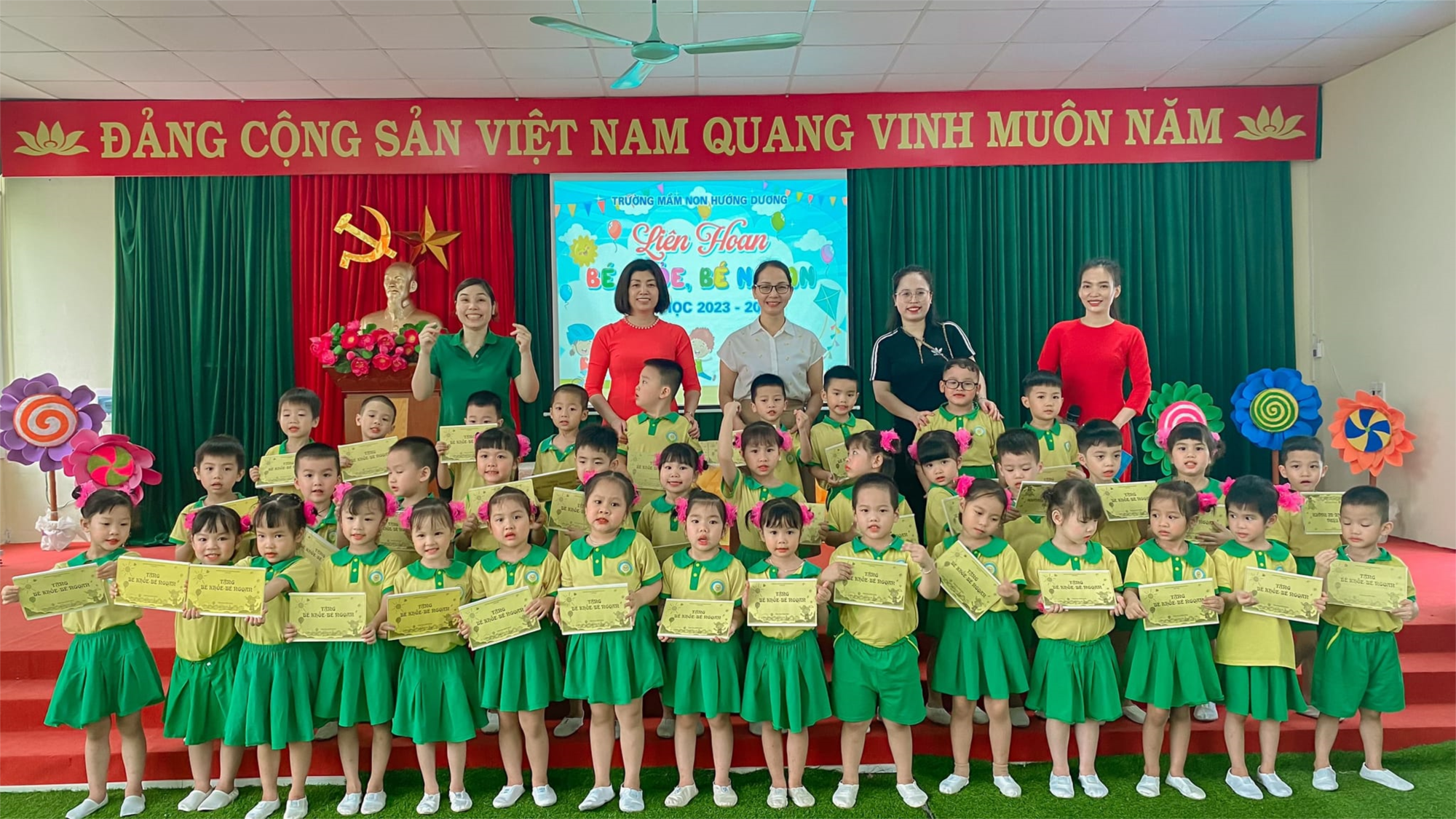 Liên hoan Bé khỏe Bé ngoan là một sân chơi lý thú và bổ ích. Qua hoạt động, trẻ được rèn luyện tố chất về vận động, tư duy, phối hợp trong hoạt động tập thể; trẻ mạnh dạn tự tin và thông minh hơn. Trẻ vui tươi phấn khởi tham gia hoạt động cùng cô và các bạn. Dưới đây là một số hình ảnh về hoạt động.